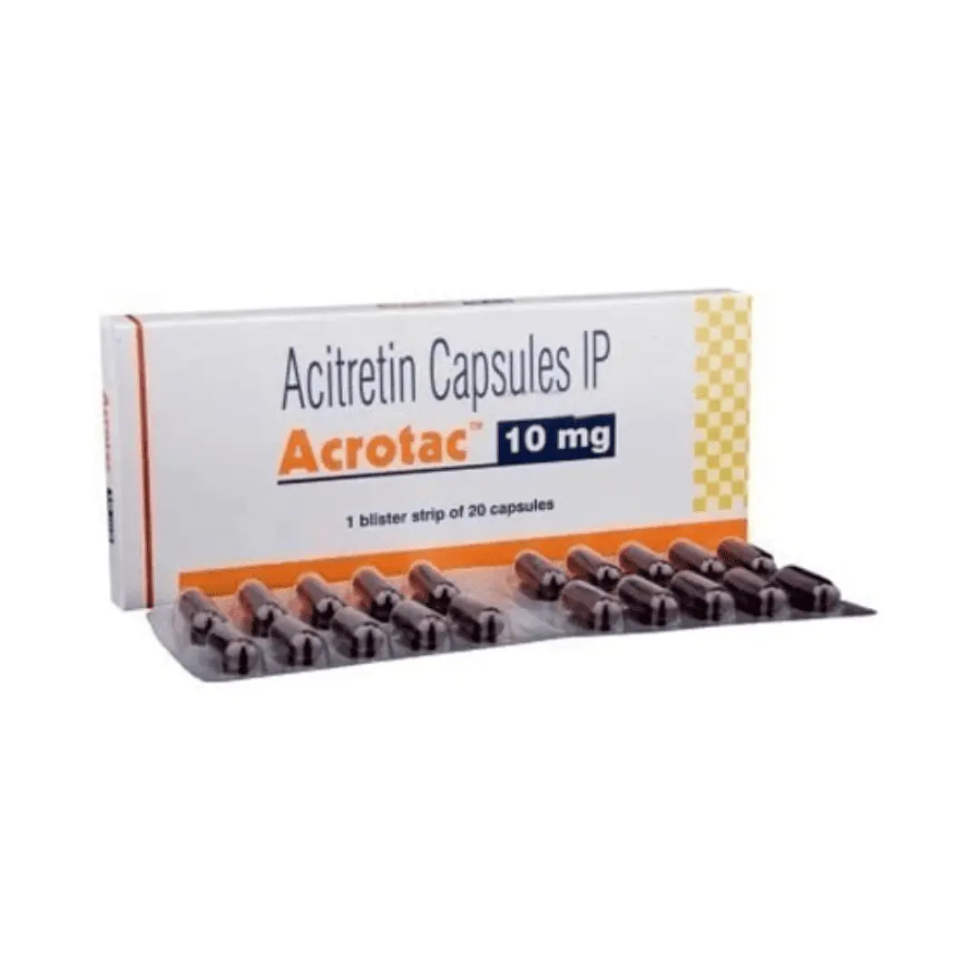 Acrotac 10mg contains acitretin, which belongs to a group of medicines called ‘retinoids. It is used to treat severe skin condition in which the skin has become thick and scaly.