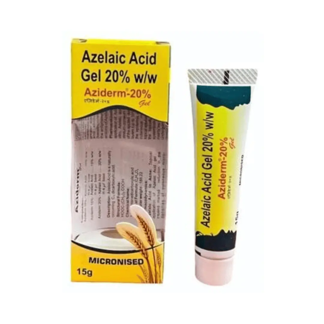 Aziderm Gel belongs to the class of ‘anti-acne medication’, primarily used to treat acne (pimples) and rosacea. It has antibacterial, keratolytic, comedolytic, and anti-oxidant activity.