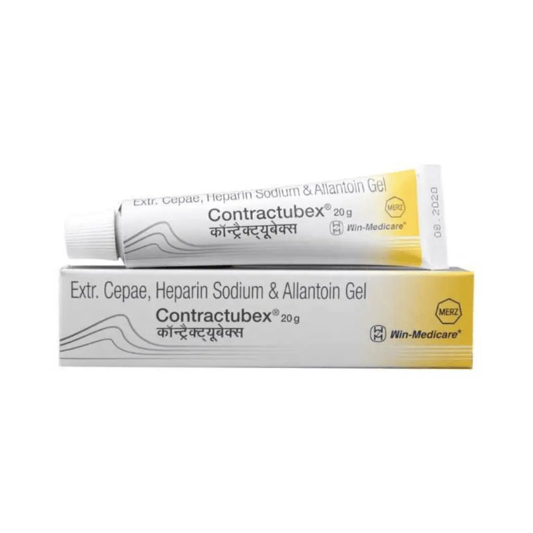 Contractubex gel is a combination medicine used to treat scars resulting from accidental injuries, cuts, burns, surgery, acne, stretch marks and breast amputations.