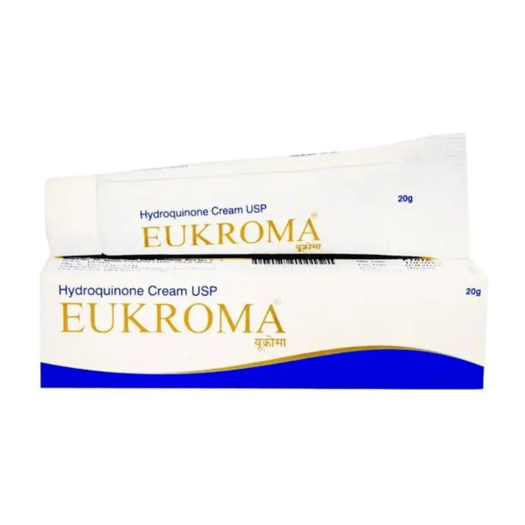 Eukroma Cream belongs to a combination of ‘skin cosmetics’ primarily used for brighter, more radiant skin complexation. It is also used to treat melasma, hyperpigmentation.