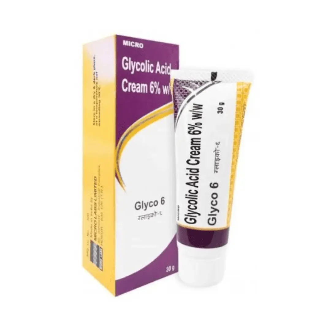 Glyco 6 cream is a topical cream used to treat hyperpigmentation, photodamaged skin and acne. It contains glycolic acid, which has antibacterial, antioxidant and humectant properties.