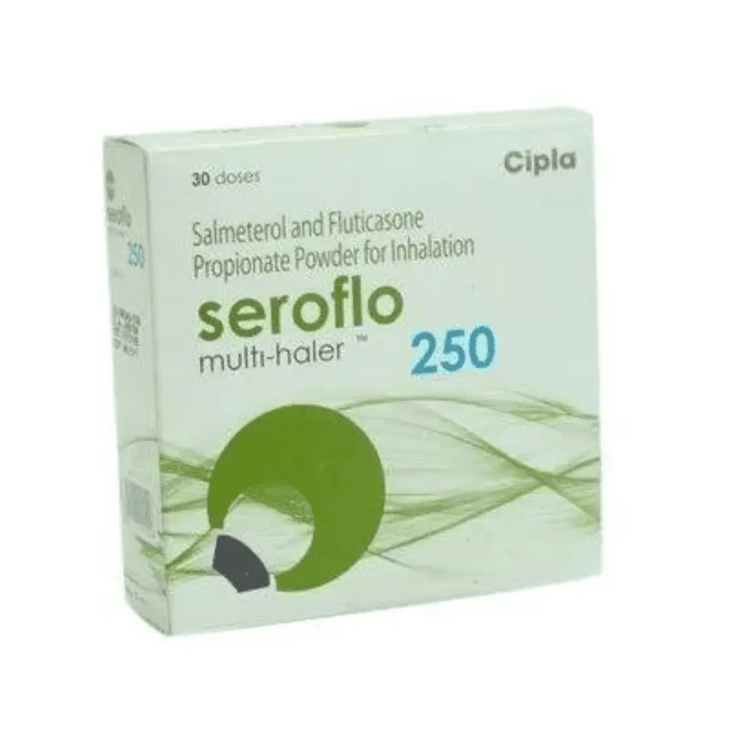 Seroflo Multihaler 250 mg is used to treat Asthma symptoms, such as breathing shortness, chest tightness.