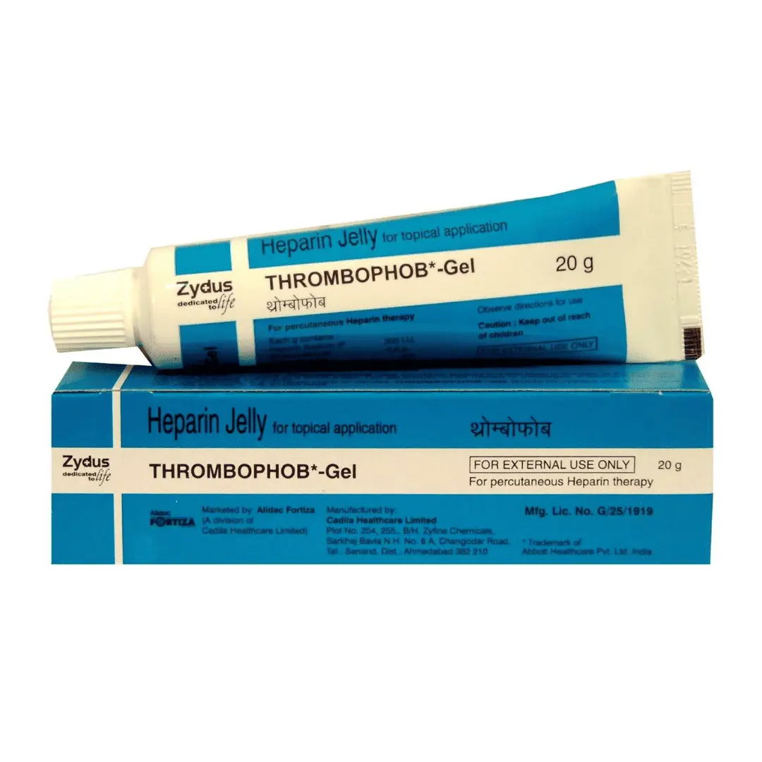Thrombophob Gel is used for Superficial thrombophlebitis, Blood clots in the veins, Thrombophlebitis, Bruising due to blood clots, Superficial thrombosis, Blood clots in lung, Pain of the veins.