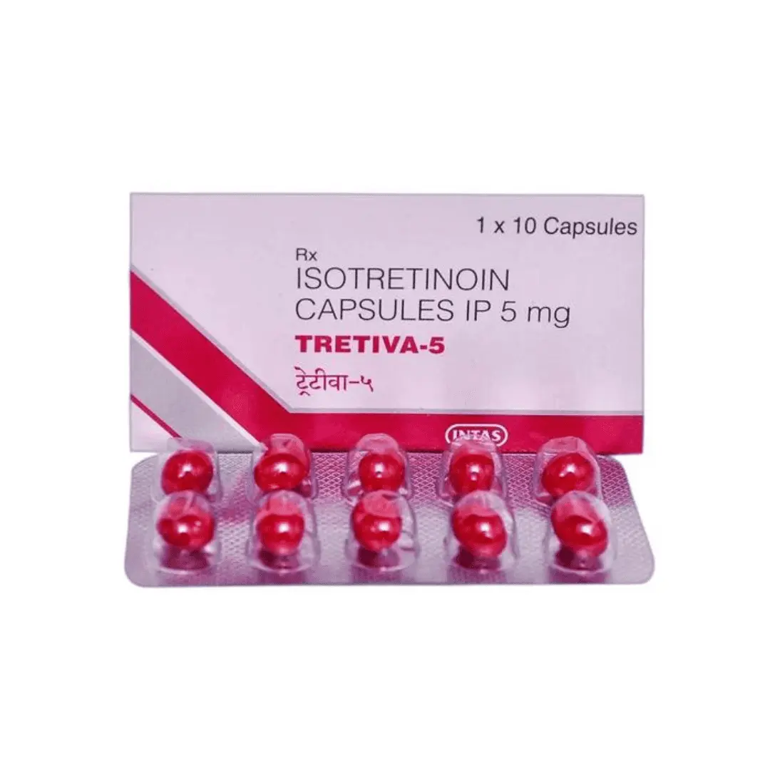 Tretiva 5mg helps in treating acne by inhibiting the function of sebaceous glands thus, reducing the secretion of oil (sebum) in the skin.